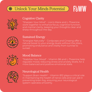 Navigate through mental fog and distractions with the clarity that Lion's Mane gummies provide. Known for its cognitive-enhancing properties, Lion's Mane can sharpen your focus, allowing you to tackle complex tasks with improved concentration and precision (Healthline)